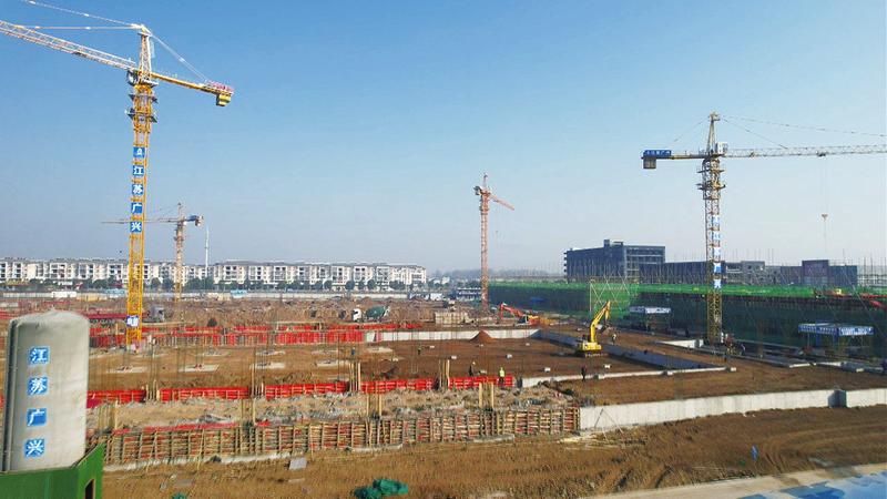 该项目系东至县发展现代服务业的地标性项目,建成后将助力该县优化产业结构,实现物流行业跨越式、高质量发展。图为项目施工现场。