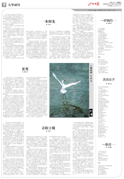 养竹、养兰、养菖蒲,我也养豆腐。清水养豆腐,可看可吃,先看后吃,看着心静,吃来踏实。家里时常养一块豆腐,青花瓷大碗,清水刚刚没过豆腐,露从今夜白。