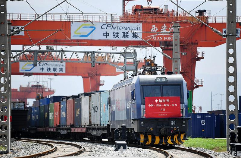 8月23日,陕西首趟中越国际货运班列准备从西安国际港站出发开往越南河内。