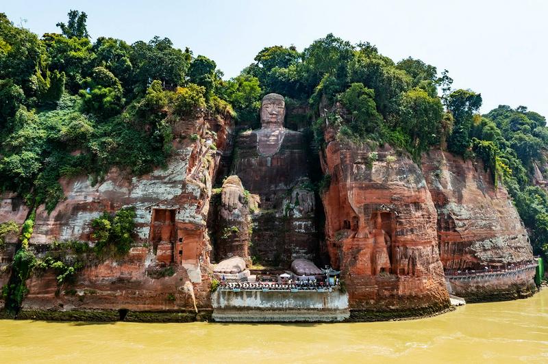 近期,持续高温晴热天气使四川省多地出现不同程度的旱情,长江上游的主要支流岷江、青衣江和大渡河三条水系的上游来水均少于往年同期,导致乐山大佛前方的三江汇流处水位持续降低,部分河床与江滩裸露,乐山大佛罕见露出底座。