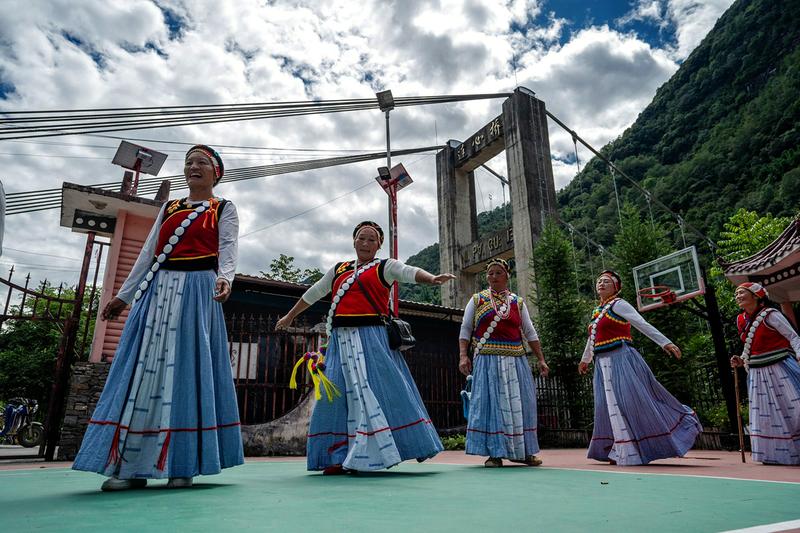 ▼云南省怒江州福贡县石月亮乡拉玛底村村民自发组成的“奋进合唱团”在村委会排练节目(2022年9月14日摄)。2020年,怒江州26.96万贫困人口全部脱贫,249个贫困村全部出列,4个贫困县(市)全部摘帽。