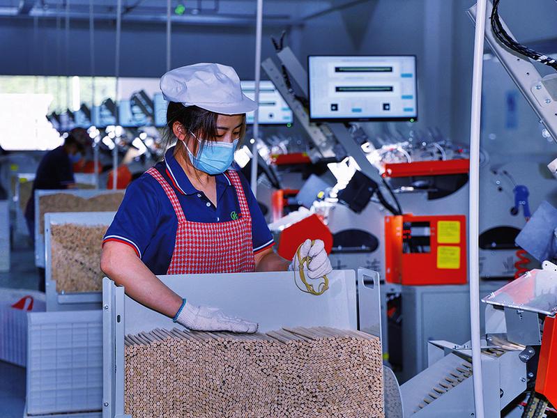 ▲鸿叶集团工人正在加班加点赶制外贸订单