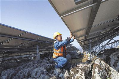 ▲贵州省黔西市定新一期农业光伏电站项目施工现场。 史开心摄(人民视觉)