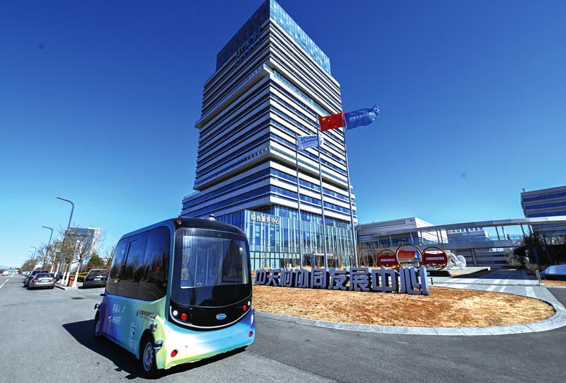 一辆无人驾驶汽车停靠在京津中关村科技城协同发展中心前(2月20日摄)。