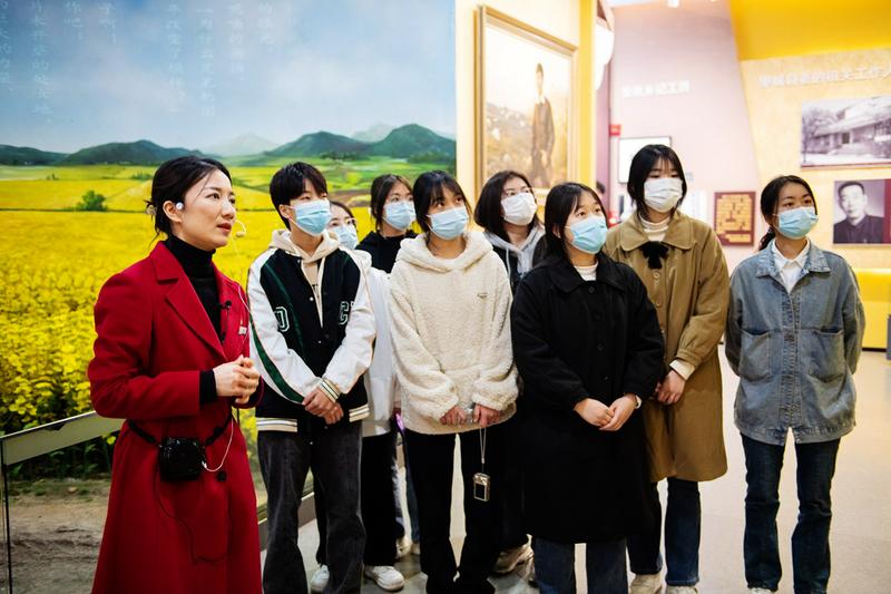 ▲3月1日,在湖南雷锋纪念馆,张璐琪(左一)在为大学生讲解雷锋生平事迹。