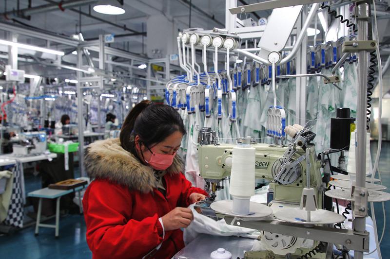 位于池州高新区的安徽卡尔菲特有限公司是国内一家整合产品研发链、生产供应链、合作渠道链的规模化童装企业。自2016年落户池州以来,目前已建成占地面积356亩,总建筑面积约12.7万平方米的大型产业园区。2021年开始,该公司投入3000万元,对企业生产线进行智能化改造。截至目前,公司已经完成了对整个生产线的迭代更新,生产效率提高30%以上,人工成本降低了20%,并获得省级企业技术中心、省级专精特新企业等称号。图为该公司生产车间一角。