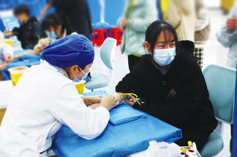 2月28日,贵池区2023年高考体检工作正式启动,杏花村街道社区卫生服务中心首次承担全区7114名高考考生的体检工作,预计3月24日全区高考体检工作结束。图为池州德明中学高三学生正在进行血常规项目检查。通讯员董红艳摄