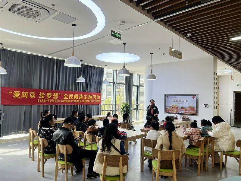 3月26日下午,贵池区新时代文明实践中心、清风街道新时代文明实践所、翠百社区新时代文明实践站在阅读空间联合开展“爱阅读绘梦想”全民阅读主题活动。文宣摄□记者汪玉