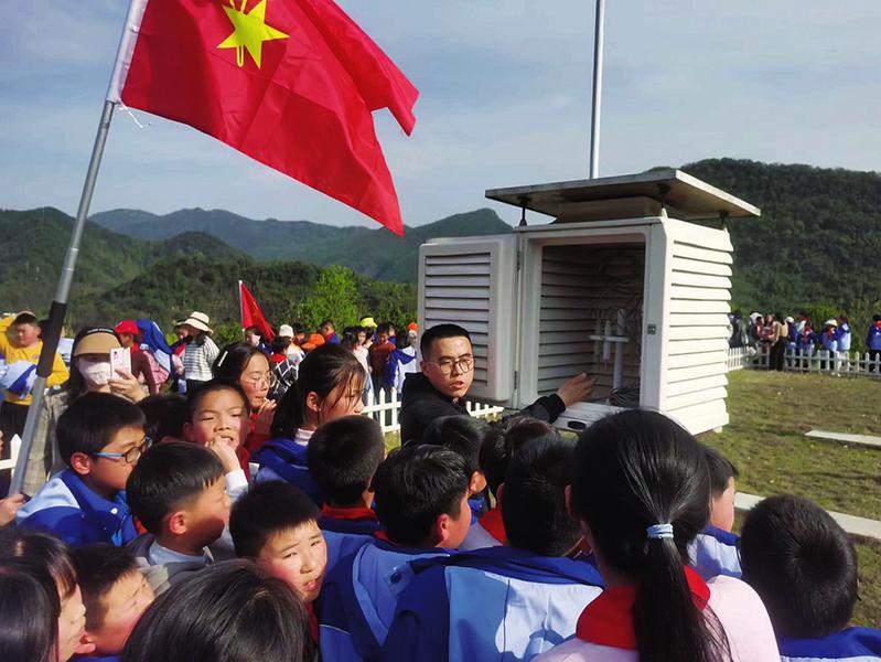▲3月28日下午,在石台县国家气象观测站,石台县实验小学260余名小学生在探索气象的奥秘。活动中,气象工作者化身老师,带领孩子们零距离认识各种观测仪器,切身体验模拟翻斗雨量传感器的采集降水过程,了解各种各样的天气现象和天气预报制作流程,掌握实用的气象灾害防御知识。