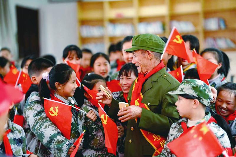 市退役军人事务局联合青阳县新河镇中心小学邀请参战老兵江习泉走进学校