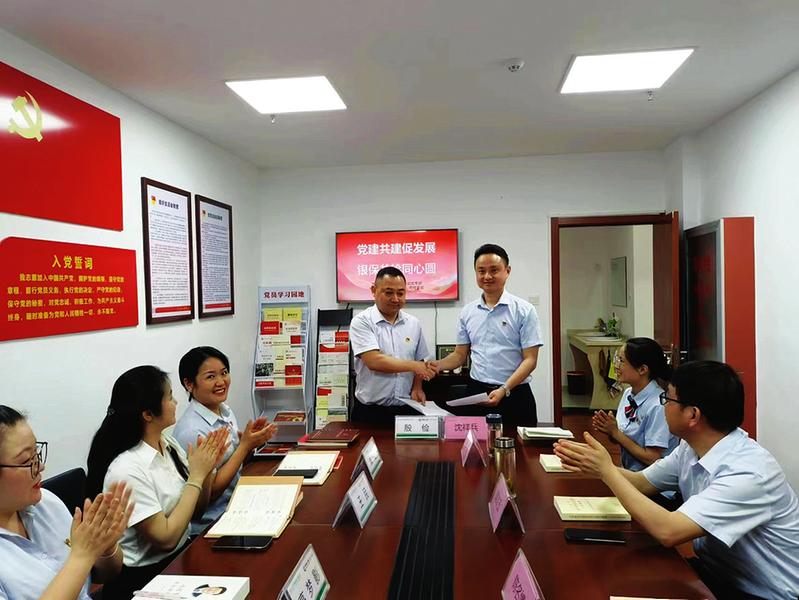 ▲青阳农商银行营业部党支部与人寿财险青阳县支公司党支部签署党支部结对共建合作协议