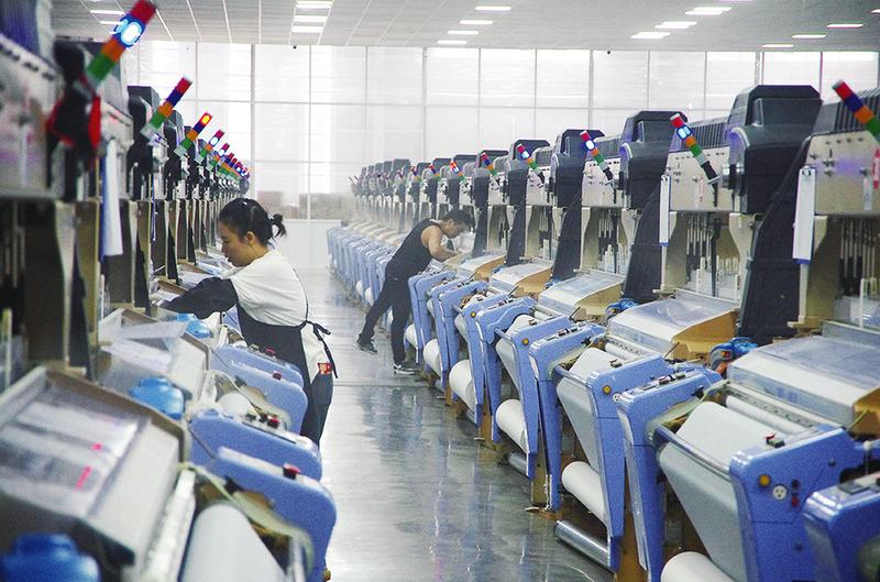 日前,记者在该公司宽敞明亮的生产车间内看到,一台台崭新的机器摆放整齐,工人穿梭于机器间,虽忙碌却有序。传统纺织企业生产线上喧嚣闷热、挥汗如雨、污水横流的景象已经成为“过去式”。