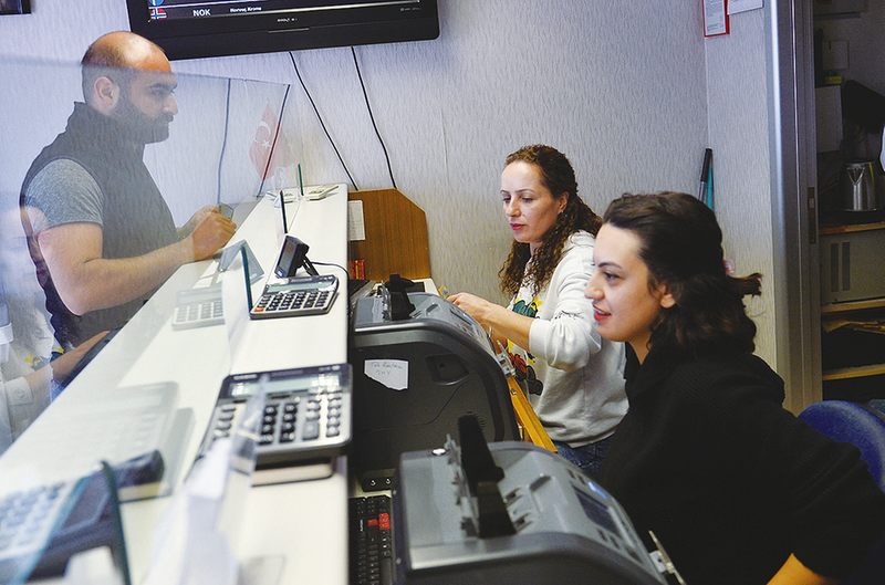 11月23日,一位顾客在土耳其安卡拉一家货币兑换处办理业务。土耳其中央银行23日宣布,将基准利率从35%上调500个基点至40%。这是土耳其央行6月进入加息周期后连续第六次加息。新华社发(穆斯塔法·卡亚摄)