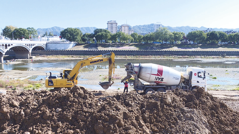 在县城河西项目建设现场,笔者看到一片繁忙景象。挖掘机、混凝土搅拌运输车等多台大型机械在紧张作业,数十名工人正忙碌施工,平整场地、路基浇筑等各项施工任务有序推进。