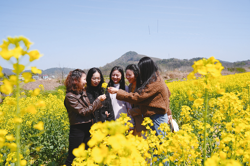 新河镇桐梓圩千亩油菜花竞相绽放吸引众多游客观赏