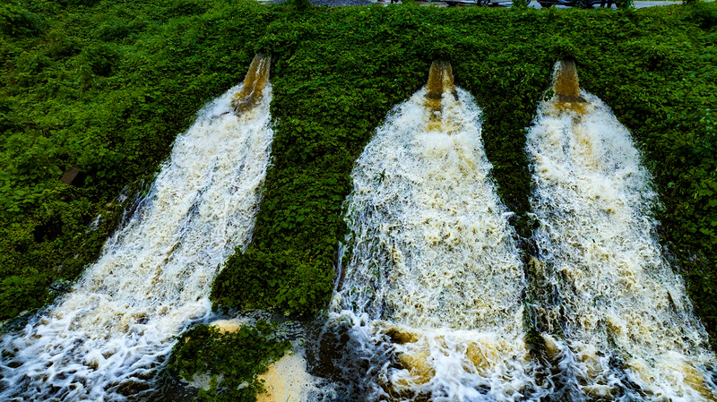 ▷ 本轮强降雨以来,青阳县蓉城镇姚家圩、合心圩排涝站共投入8台机组,24小时全力排水控水位,确保安全度汛。图为合心圩排涝站正在抢排积水。通讯员 杨亮 摄