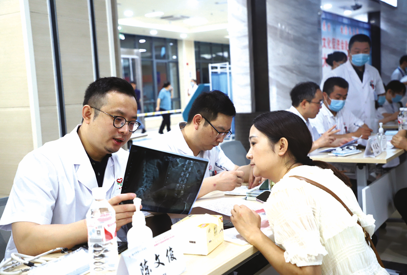 7月13日,海军军医大学附属长征医院专家陈文俊在贵池区开展义诊。通讯员孙梦晨 摄