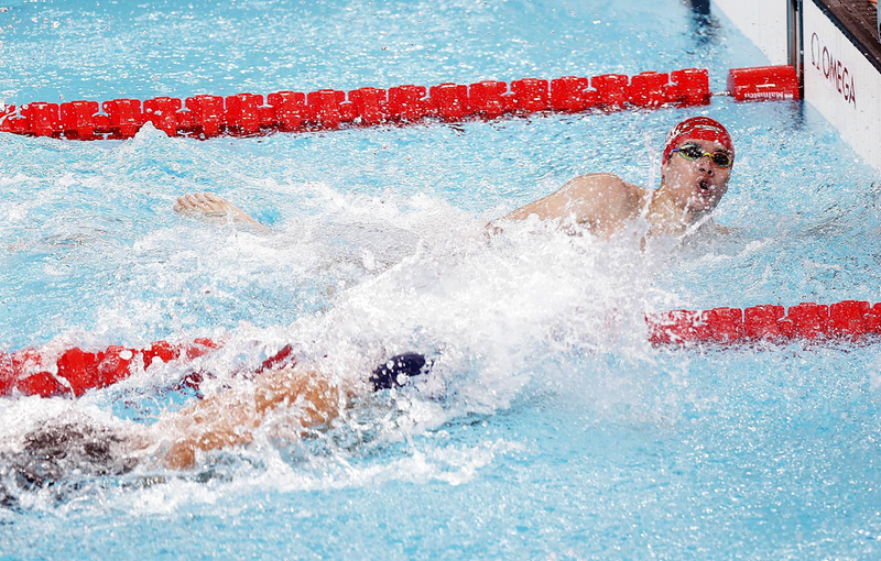 ◀8月4日,中国选手邹敬园在比赛中。新华社记者 程敏 摄
