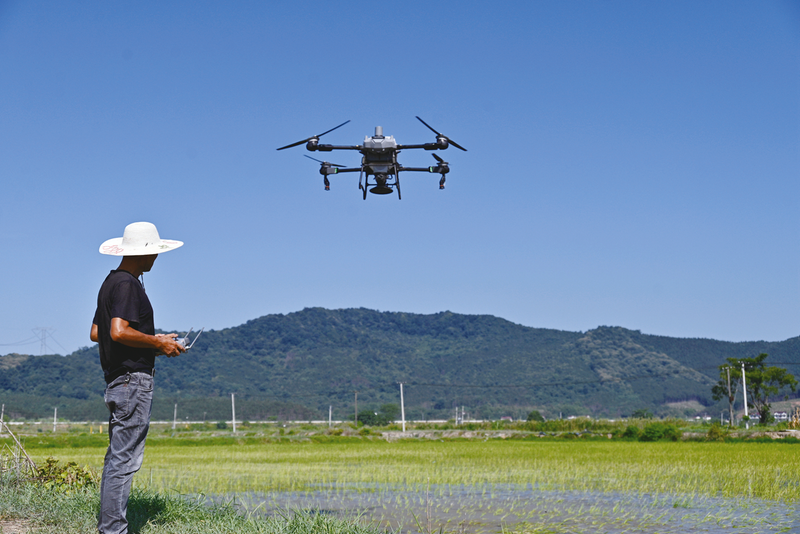 8月4日,在青阳县蓉城镇分姚村千亩圩水田里,一台无人机在技术人员的操作下穿梭于稻田上空,快速均匀地播撒肥料,既便捷又省力。眼下正值晚稻管理关键期,该镇充分利用科技手段助力田间管理,为水稻增收保驾护航。