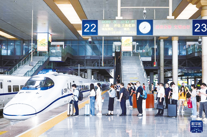 近日,旅客在南京南站乘坐G8389次高铁列车。 新华社发