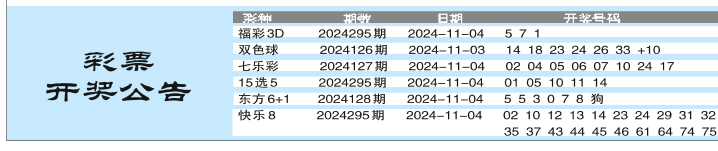 彩票开奖公告