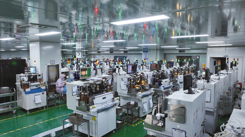 在安徽先捷电子股份有限公司现代化车间内,排列整齐的智能化生产设备正高效运转。