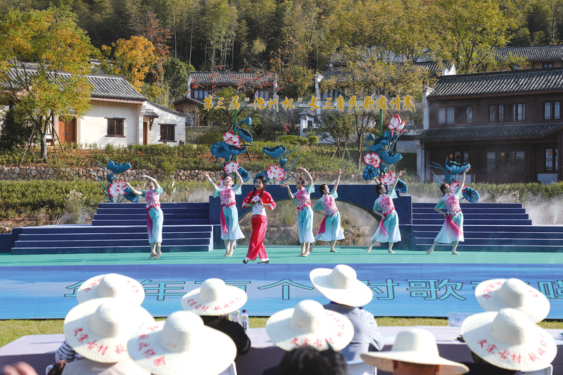 11月13日下午,第三届“池州杯”长三角民歌邀请赛在青阳县五溪山色文宗古村开赛。飘荡在山水间的大别山民歌、历史悠久的河阳山歌、宛转悠扬的九华民歌……来自沪苏浙皖三省一市的12支队伍带来了地域特色鲜明的民歌,为观众带来一场视听盛宴。