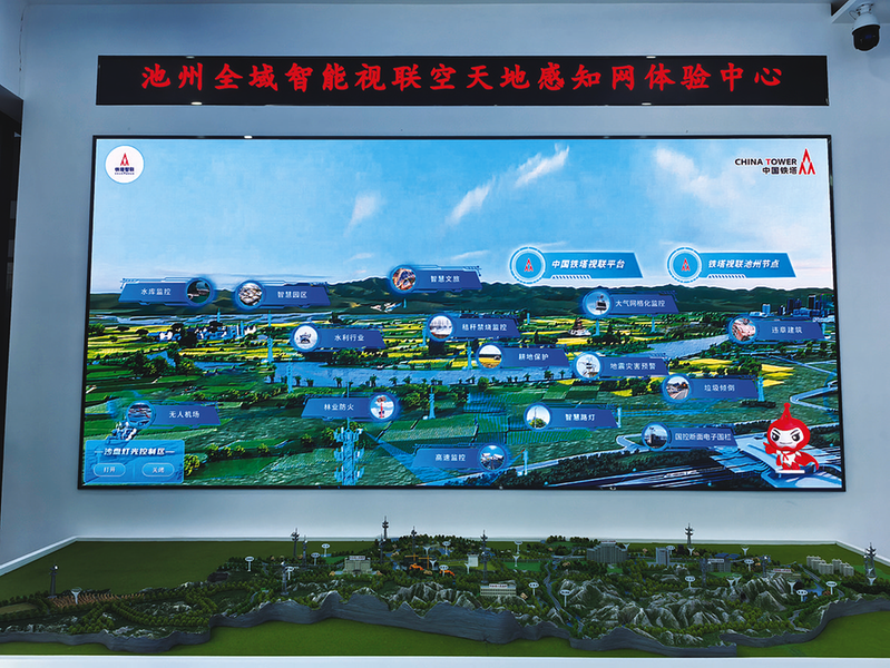 ▲图为池州铁塔展厅“池州全域智能视联空天地感知网体验中心”。