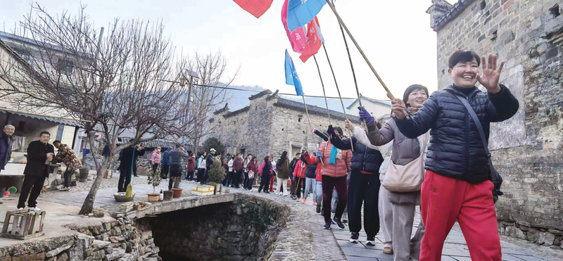 12月28日,县户外运动协会组织80余名会员前往南溪古寨开展“新年登高展风采,健身逐梦向未来”徒步登山活动,登山者精神饱满、你追我赶,展现出昂扬向上的时代风采。 通讯员 汪爱国 摄