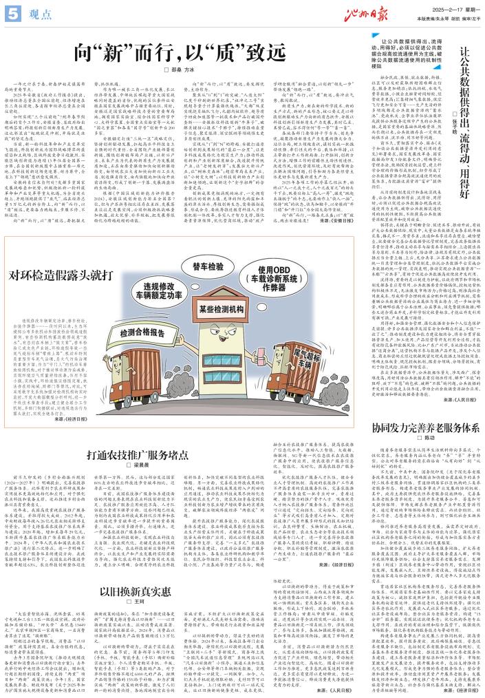以旧换新的带动力,得益于良好的消费体验。2024年以来,各地区各部门出台相关举措,持续优化以旧换新流程,发展“ 互联网+二手”等新模式。商务部上线“ 全国汽车流通信息管理”系统网站以及“汽车以旧换新”小程序,联通工业和信息化部、公安部等部门车辆相关数据,实现补贴申请一口提交、一网联审。如今,人们点点手机就能领取补贴、支付环节可以直接抵扣、上门送新收旧可以一站式完成,让以旧换新的链条更短、成本更低、体验更优。