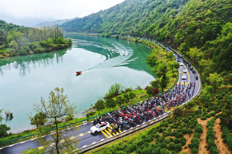 2024“医硒山泉”杯中国公路自行车职业联赛安徽石台站比赛现场(资料图)。 通讯员 丁长杰 摄