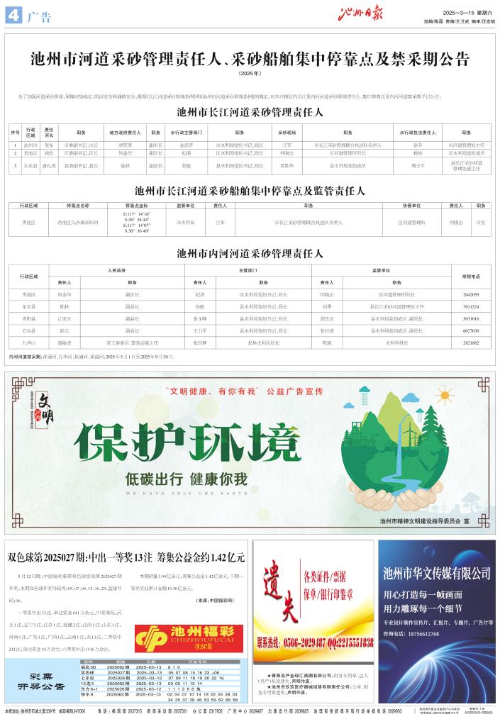 池州市河道采砂管理责任人、采砂船舶集中停靠点及禁采期公告