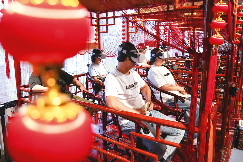 ▲ 游客在苏州拙政园体验VR漫游(5月18日摄)。