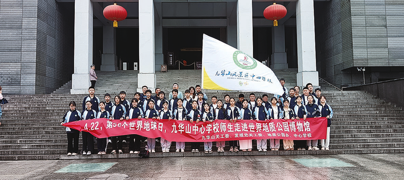 图为九华山中小学生开展地学研学活动。