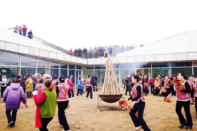 上午10时18分,“咚、咚、咚”浑厚的鼓声响彻山谷,“开山门”仪式正式开始,来自梅村中心小学的20名学生诵读新春祝文,诵毕高呼:“开山门喽!”广场上,一扇硕大的红色“山门”缓缓开启,灵动的舞狮踏着鼓点腾跃起舞,喧闹的气息瞬间填满整个村庄。“往年腊月也有祭山的习俗,但从没这么热闹过。这几年村里搞旅游开发,把这些‘老传统’捡了回来,越办越红火。”村民杨风云看着眼前的热闹景象,笑容满面。